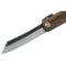 Couteau Japonais Traditionnel. Longueur fermé 10,79cm. Longueur de lame 7.62cm. Lame finition satin. Lame traditionnelle en acier Blue Paper. Manche en métal finition noir & marron. Ouverture de la lame avec le pouce. Trou dans le manche pour dragonne. Made In Japan.