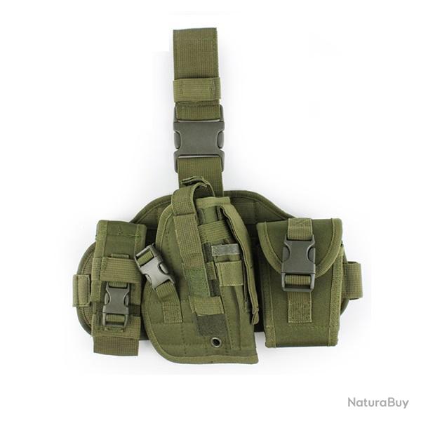 Descriptifs: - Matériaux: 900D Oxford Cloth - Accepte un pistolet - Accepte un chargeur sur la poche latérale et des accessoires - Les poches, la plateforme et le holster disposent du système molle, par conséquent vous pouvez adapter toutes les poches disposant de ce système. - Attaches de cuisse réglables avec verrouillage par clips. - Fixation supérieur de ceinture par velcro et clips. - Poids: 550g - Taille: 31cm x 19cm