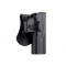 D?verrouillage du pistolet : par pression sur le bouton situ? sur le holster :