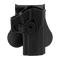 Déverrouillage du pistolet : par pression sur le bouton situé sur le holster.