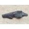 Fermeture par bouton pression, lequel s'est détaché proprement du rabat. Un amateur de cuirs pourrait soit supprimer le rabat, soit restaurer le bouton pression.