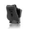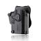 Holster rigide universel en polymère haute densité avec bouton de verouillage. Il est livré avec un paddle pour le port à la ceinture et possède un renfort en silicone qui apporte plus de confort. Votre hoslter peut également se fixer à une attache molle, plaque de cuisse ou harnais d'épaule. Rotation possible à 360° à l'aide d'une clef allen.