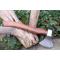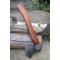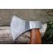 Hache Damas de Chef Viking de Cérémonie à lame fixe - Longueur totale 37cm - Longueur de la tête 14cm - Fonction marteau - Longueur du tranchant 12cm - Construction d'une seule pièce - Full tang - Lame Acier damas 512 couches - Manche en bois - Etui cuir - Fabrication Artisanale