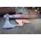 Hache de Jarl VIking - Longueur totale 56cm - Longueur de la lame 14cm - Longueur de la tête 13cm - Lame en acier carbone 1055 - Fonction marteau - Manche en bois avec clous et lanières cuir - Etui cuir - Fabrication artisanale -