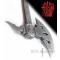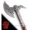 Superbe Hache Medievale Allemande (XI eme Siecle) de la marque Denix. Lame en acier inoxydable non tranchante. Manche en bois richement decore avec ornement en acier a son extremite. Longueur totale : 79cm Lame : 18cm x 20cm Poids : 1340grs Finition parfaite.