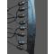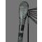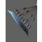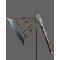 Ces haches cérémonielles sont appelées kilonda ou nsapo chez les Songye. La lame est ajourée et évasée. Elle est décorée de 24 têtes en fer forgé - 12 sur chaque face). Le haut du manche est finement incisé de motifs géométriques de couleur plus claire que le bois.