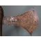Lame en cuivre martelé avec représentation d'un visage stylisé sur les deux faces.