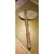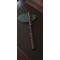 Hachette Kanak décorative avec manche en bois agrémenté de croisillons de corde et plume. Tête constituée de pierre zébrée verte polie emmanchée dans une rainure et consolidée par des cordes. État neuf voir photos. Longueur 35 cms. Tête en pierre de 10x18 cms