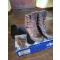 On été graissées et brossées avec le lait d'entretien haix prévu pour le modèle d'où leur couleur plus foncée et brillante.
