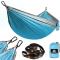 Hamac Ultra léger 300x200cm 2 Places Nylon Parachute Séchage Rapide Charge 300 kg Bivouac Bleu