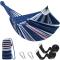 Hamac pour camping, bivouac jardin Charge 300 kg avec Sangles et Mousquetons Bleu-Rouge-Blanc