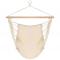 Hamac couleur crème 185 x 125 cmHamac pour s'allonger et se détendre - par exemple dans votre jardin, terrasse, balcon et pourquoi pas dans la salle de séjour - selon l'endroit où vous voulez fixer le siège. Ce hamac s'intègrera à merveille à l'endoit où vous le souhaitez! Le siège est maintenu par l'anneau robuste galvanisé qui permet au siège de tourner librement. Le hamac est en polyester et coton résistant et solide. Il est solidement maintenu par une large barre de lestage robuste en bois dur, et pouvant charger jusqu'à 110 kg. De plus, il a une grande surface d'assise jusqu'à 185 x 125 cm.