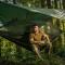 Deux poches intérieures permettent de garder l'essentiel à portée de main. Le système de suspension complet (sangles, cordes, mousquetons, piquets) assure une installation rapide. Une housse de transport est fournie pour un rangement compact.