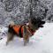L’anneau central sur le dos du harnais permet d’attacher le chien à une laisse ou une longe afin de réaliser des recherches de gibiers avec des chiens de sang ou limiers.