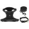 Harnais pour chien avec laisse et collier réglables noir LDites adieu aux tractions et bonjour à un meilleur contrôle grâce à notre harnais pour chien facile à utiliser. Offrez à votre ami à quatre pattes la meilleure expérience de promenade ! Facile à enfiler et à enlever : ce harnais pour chien est facile à enfiler et à enlever avec ses 2 boucles à dégagement rapide. Il suffit de glisser le harnais sur la tête de votre chien, d'attacher les boucles, d'ajuster les bandes et vous êtes prêt à partir !Entièrement réglable : ce harnais pour chien dispose de 4 bandes réglables pour un ajustement parfait. Personnalisez les 2 sangles de cou et les 2 sangles de poitrine pour plus de confort et d'espace pour grandir ! Votre chien restera en sécurité sans glissement ni sensation d'étouffement, car la pression de traction est uniformément répartie sur le corps.Pas de traction ni d'étouffement : ce harnais pour chien possède deux anneaux de laisse pour des marches plus sûres. L'anneau avant permet d'arrêter de tirer pendant l'entraînement, tandis que l'anneau arrière est idéal pour les marches quotidienne, le jogging, la randonnée, etc.Sécurité et confort : ce harnais pour chien est fabriqué en polyester et rembourré avec un coussin doux pour protéger la peau de votre chien. De plus, le filet d'air respirant permet à votre chien de rester au frais et à l'aise toute la journée.Bandes réfléchissantes de haute visibilité : ce harnais pour chien est doté de bandes réfléchissantes sur sa surface, garantissant une marche en toute sécurité de jour comme de nuit. Bon à savoir :Ce produit convient au lavage en machine et à la main. Pour de meilleurs résultats et pour prolonger sa durée de vie, il est recommandé de le laver à la main.