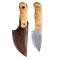 Le manche en rondelles de cuir après un petit traitement à la cire d'abeille lui rendra on étanchéité et sa patine. Pour le fourreau une petite restauration et il serra parfait, le cuir gras est de très bonne qualité. En bref un bon couteau, avec helle on ne se trompe pas sur la qualité.