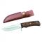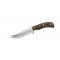 Le manche est fabriqué en bois de pakka. C'est un matériau composite à base de bois laminé et de résine chauffée. Il traverse ensuite un processus de polissage et un ponçage bien défini pour donner un rendu très esthétique. Cette poignée se tient extrêmement bien dans la main pour une adhérence optimale à l'usage. La zone de préhension ergonomique avec protection des mains intégrée et évidement prononcé des doigts assure une position sûre des mains. L'extrémité de la poignée a un trou qui peut être utilisé pour attacher une ligne de sécurité. Un étui en cuir complète l'équipement.