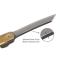 Attention, l'acier carbone nécessite un entretien particulier : ces lames noircissent à l'usage, cette oxydation est inévitable et ne peut être évitée. Il ne faut pas laver le couteau, il suffit d'essuyer la lame après usage. Il est bon de passer régulièrement un chiffon imprégné d'huile sur cette dernière.