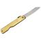 La lame du couteau Aogami Warikomi est en acier bleu Aogami, qui se cache dans le manche en laiton. La lame en forme de V vous permet dutiliser le couteau de chaque main. La lame souvre par le levier Chikiri et reste ouverte avec friction, sans mécanisme de verrouillage séparé.