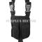 Holster d'épaule pour gaucher et/ou droitier. (Taille unique réglable). Holster d'épaule ambidextre fait à 100% de polyamide imperméable et respirant pour plus de légèreté et de confort. Ce holster peut être porté par des droitiers, aussi bien que des gauchers. Il est muni de différents réglages pour l'adapter à toutes les morphologies ainsi que deux portes chargeurs et des passants de ceinture réglables par velcro.