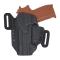 La particularité de l'Holster LTG-PRO, est que, lorsque l'arme est sortie de l'étui, l'index de l'opérateur se retrouve naturellement aligné sur la carcasse du pistolet et non sur le pontet ou la queue de détente. La position de l'Holster à la ceinture, peut être rehaussé et incliné grâce au système MMS. Les deux passants de ceinture Rubber-Tech peuvent se retirer pour être fixé sur différents points prédéfinis sur le côté de l'étui.
