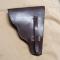 Vend holster pistolet de poche automatique calibre 6,35mm le français en cuir marron et en bon état général pour sont âge.