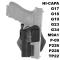 L'étui fonctionne en verrouillant le rail inférieur avant et le pontet, s'adaptant aux pistolets avec rails intégrés tels que G17/G19, P320, M9, P226, Hi-Capa et bien d'autres. Cependant, il est important de noter qu'il n'est pas compatible avec les pistolets qui ont des rails spécifiques comme l'USP.