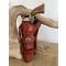 Ce holster est fabriqué dans un cuir de qualité. Le cuir utilisé est un cuir Tannage Végétal Naturel qui a été teinté, graissé et protégé avec des produits de la marque FIEBING. Les coutures de ce holster sont entièrement réalisées à la main, à l’aide d’un fil polyester tressé et ciré, garantissant solidité et durabilité. Ce choix de fil assure une excellente tenue des assemblages et contribue à la longévité de l’article. Par ailleurs, les photographies incluant un appareil de mesure sont fournies à titre indicatif et servent uniquement à donner une estimation moyenne de l’épaisseur du cuir utilisé.