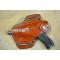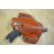 Un holster en cuir doublé droitier pour pistolet luger PO8 toute longueur de canon puisqu'il dépasse.