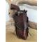 Ce holster est fabriqué dans un cuir épais de qualité. Le cuir utilisé est un cuir Tannage Végétal Naturel qui a été teinté, graissé et protégé avec des produits de la marque FIEBING. Les coutures sont faites à la main avec du fil polyester tressé et ciré.