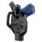 Un étui port haut de transport en polymère moulé de niveau 5. Un simple appui de pouce libère automatiquement les sécurités pour extraire l'arme. Sécurité contre l'extraction d'une tierce personne. Livré avec passant port haut.