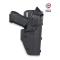 Fabriqué en Kydex thermoformé dans notre atelier parisien, ce holster résiste aux torsions, chocs, déchirures et variations climatiques. Un déflecteur anti-arrachement protège l'arceau et le rail de guidage intégré maintient l'arme en position pour une sécurité optimale.