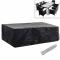 Housse de salon de jardin 8 oeillets 300 x 140 x 90 cmCette housse de mobilier de jardin de haute qualité est adaptée à la protection toute l'année de vos ensembles de mobilier en rotin de la saleté, du vent, de la pluie et de la lumière UV. La housse est faite de polyéthylène durable, qui est résistante à l'eau, aux UV et à la déchirure et donc adaptée à un usage quotidien. Elle a 10 oeillets en aluminium et une corde de fixation, donc elle s'adaptera mieux à votre meuble. La housse est adaptée à notre ensemble en rotin de 8 personnes avec SKU 40894 / 40895 / 41277. Vous pouvez également utiliser cette housse pour d'autres ensembles de meubles, tant que cela est compatible avec la taille de vos meubles. Remarque : ce produit n'est pas 100 % étanche. Ainsi, nous vous recommandons de le traiter avec un spray imperméabilisant pour une meilleure fonction d'imperméabilité.