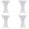 Housses élastiques de table Ø 70 cm Blanc 4 pcsCette housse de table fera de chaque table de bar simple une table de fête. Elle est idéale pour les réceptions et les fêtes de toute nature. Elle est parfaite si vous souhaitez donner à votre célébration personnelle un aspect luxueux ou vous préparer pour une réception impressionnante. Elle a une utilisation polyvalente, d'une petite fête d'anniversaire à n'importe quel événement plus grand. Cette housse de table, cousue à partir de tissu élastique, peut être simplement retirée et étendue sur les pieds de la table. Grâce à son contenu de 10 % en élasthanne, elle est toujours un bon ajustement et assure une adhérence sûre. La housse facile à entretenir convient aux tables de jusqu'à 120 cm de hauteur et peut être lavée à 40 ° C. La livraison comprend 4 nappes de table.