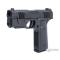 Réplique GBB de Hudson H9, par EMG. Ce dérivé futuriste de 1911 dispose d'une mécanique revisitée qui réduit fortement le recul, ici répliqué par Armorer Works.