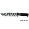 Poignard de décoration avec nombreux motifs laser tête de mort sur la lame et tête de mort en moulage métal en relief sur le manche. Poignard de grande taille avec une garde en métal de design moderne livré avec son fourreau en nylon noir pour port à la ceinture. Poignard tête de mort original avec lame dentelée et lisse d'un côté et décoration guillochée au dos de la lame.