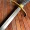 POMMEAU LAITON , FUSÉE EN CUIR FIL DE LAITON , GARDE LAITON EN U DE TYPE COLICHEMARDE, LAME D'ESTOC À PANS.