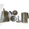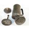 Gros pot tronc-conique à anse, muni d’un bec verseur dont il manque le bouchon qui était retenu par une chaînette encore présente.