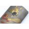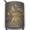 Véritable résumé du bushido, cet inro rassemble les principaux attributs du guerrier japonais. Sans doute s'agit-il ici d'une volonté de rappeler un âge d'or révolu à une époque où le Japon s'occidentalise et marginalise peu à peu la classe des samouraïs en leur interdisant le port du chignon (chonmage) et des sabres en public (cf. haitorei). - cordon accidenté;