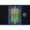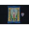 Modèle tissé sur fond bleu, marqué CJF. 95 x 65 mm.