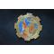 Modèle en tôle de laiton découpé, peint, manque de peinture. Symbolisme père Noël et sa hotte chargé de véhicules blindés. Surmonté d'un croissant 1ère AF. Inscription D S M - SUPPLY - Devises "Il y croient tous !" Diamètre 62 mm.