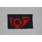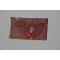 Cor en broderie écarlate sur fond gris de fer bleuté. 72 x 42 mm.