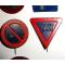 Collection de 10 insignes des années 30 des panneaux d’indications routières.