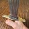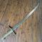 Belle forte lame typique du XVlll éme courbe à simple tranchant avec 3 gouttières , rivure bien propre strictement aucun jeu , cravate en cuir épais.