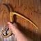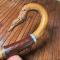 Composée d'un assemblage de trois bois exotiques dont un sculpté en divinités serpent ou dragon stylisé Lame courbe . Couteau agricole.