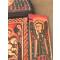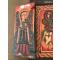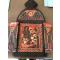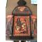 Vintage - grande icône copte peinte à la main représentant des saints Afrique XIX°- triptyque bois sculpté symboles - 45cm x 22cm x 2cm fermée - ouverte 37cm