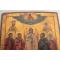 Icône orthodoxe russe représentant la Synaxe des saints autour de l'Ange Gardien, avec le Christ en gloire dans les nuées au registre supérieur tempera sur bois d'époque XIXe siècle usures du temps et frottements, voir photos