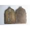 Icône orthodoxe quadriptyque de voyage en bronze partiellement émaillé