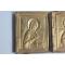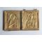 Icône orthodoxe triptyque de voyage en bronze, manque panneau latéral de droite représentant la Déisis : au centre le Christ Pantocrator, à gauche la Vierge Marie, à droite Saint Jean Baptiste au dos : scène de la crucifixion Russie, d'époque fin XIXe siècle