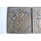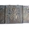 Icône orthodoxe triptyque de voyage en bronze partiellement émaillé représentant la Déisis : au centre le Christ Pantocrator, à gauche la Vierge Marie, à droite Saint Jean Baptiste au dos : scène de la crucifixion Russie, d'époque fin XIXe siècle